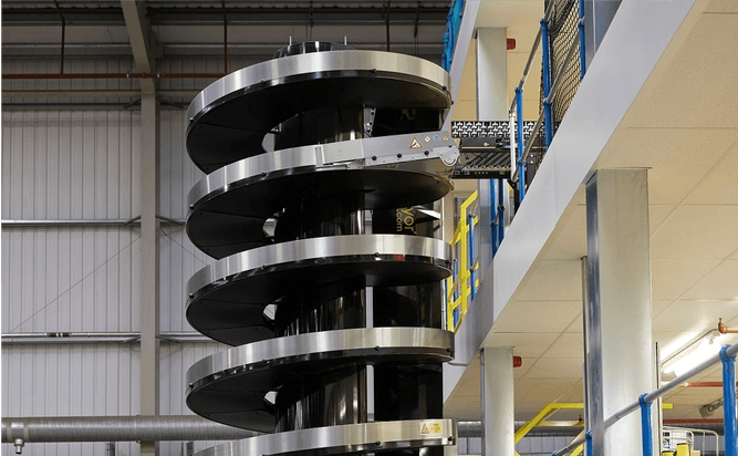 En 2016, AMH Material Handling recibió el encargo de desarrollar una solución para aumentar la velocidad, la precisión y la capacidad de procesamiento automatizando el proceso de empaquetado y despacho en la instalación de tres plantas con entrepiso.
