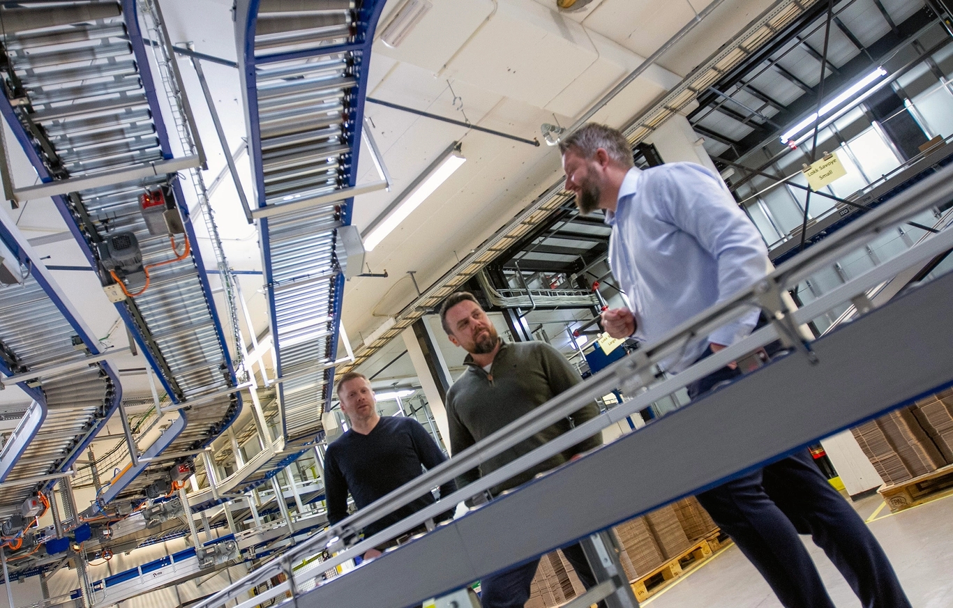 El departamento de logística de Komplett trabaja en estrecha colaboración con ITO PallPack y otros proveedores. En la imagen aparecen Kenneth Hofstedt, Kjetil Sundland Henriksen y Bjørn-Tore Svendsen.