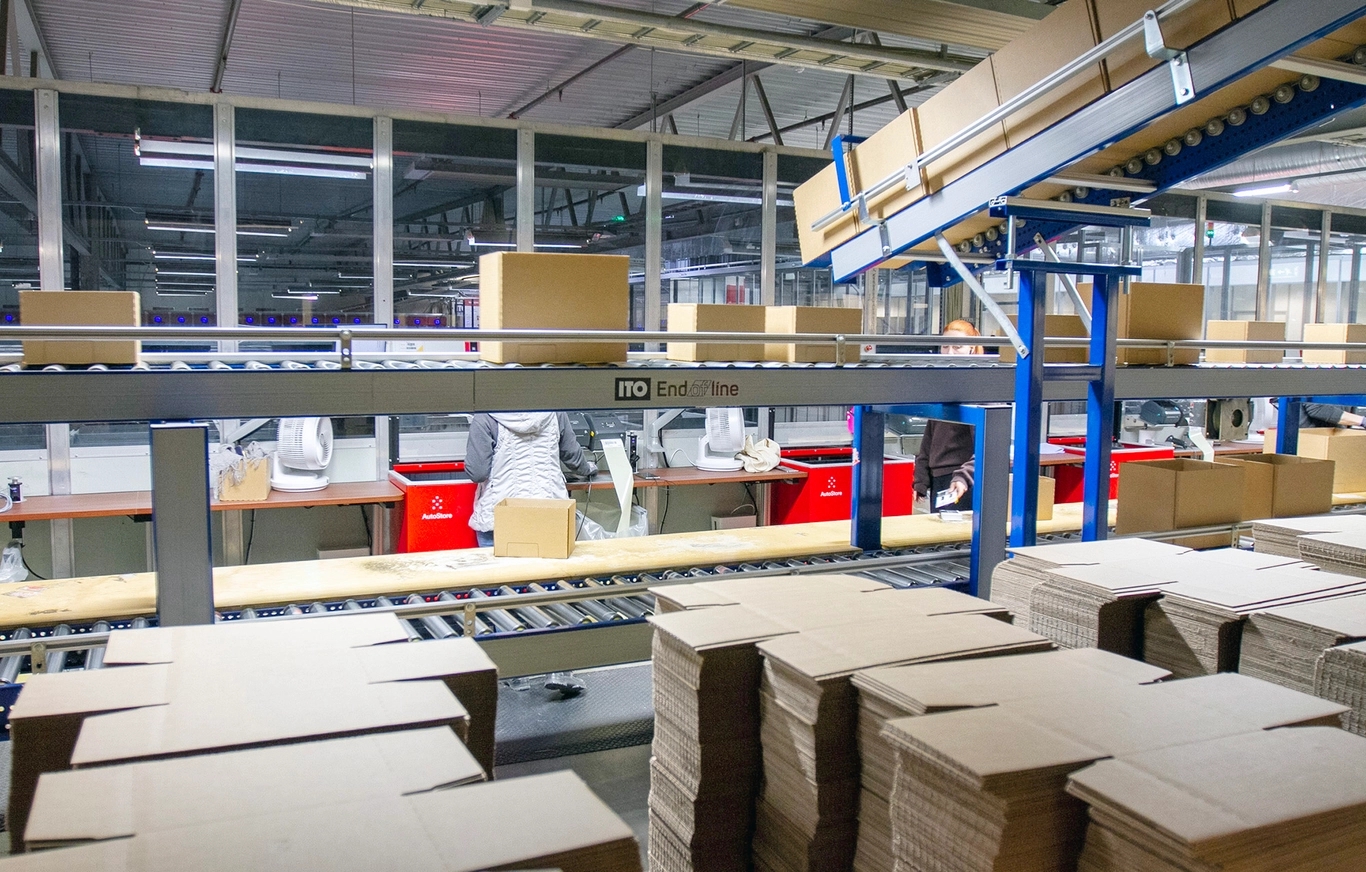 Los pedidos provienen de Autostore y se embalan en el entresuelo. Entre las inversiones del año pasado también se incluyen las líneas de ITO hacia el piso inferior.